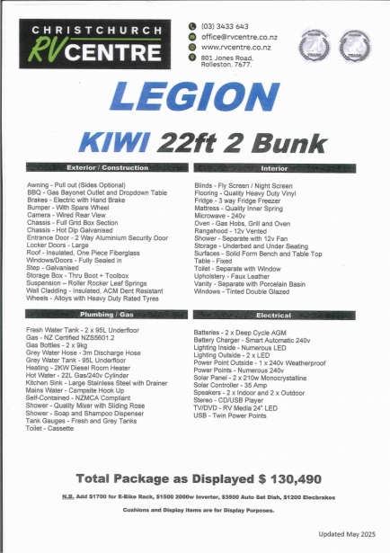 - Christchurch RV Centre is the only factory accredited Legion dealer in New Zealand.